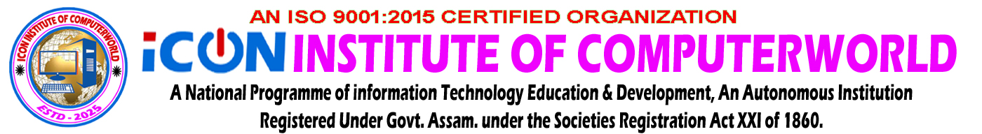 “ICON INSTITUTE OF COMPUTERWORLD”, managed by “ICON INSTITUTE OF COMPUTERWORLD”, is an ISO 9001:2015 certified organization dedicated to providing high-quality education across various domains. As a national program of information technology education and development, we are an autonomous institution registered under the Ministry of Corporate Affairs, Govt. of India (society reg no-coming soon)
